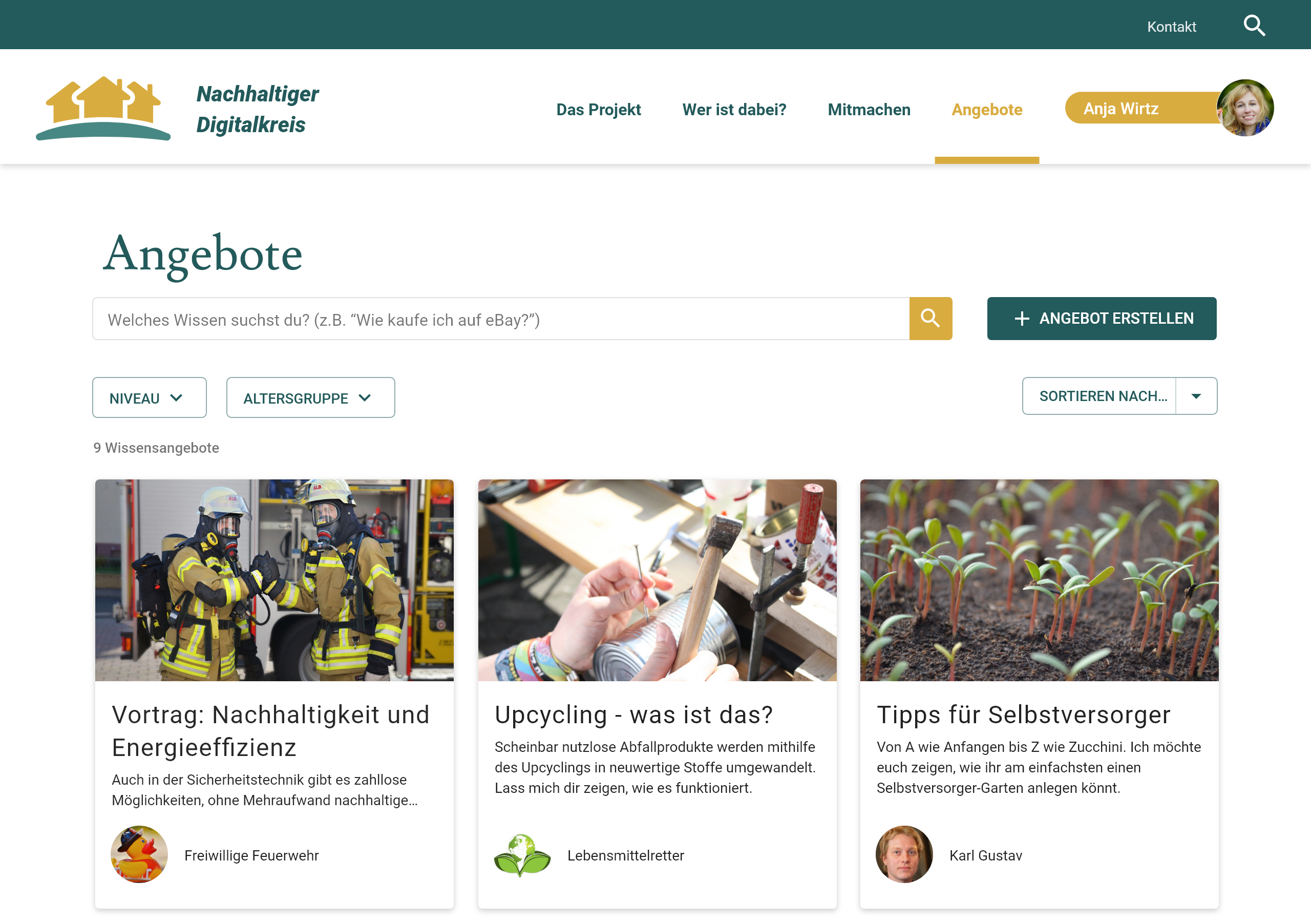 Da nicht jedes Wissensangebot für jede Person in Frage kommt, ist im Portal vorgesehen, dass die Teilnehmenden die Wissensangebote nach Altersgruppe und nach Niveau filtern können.