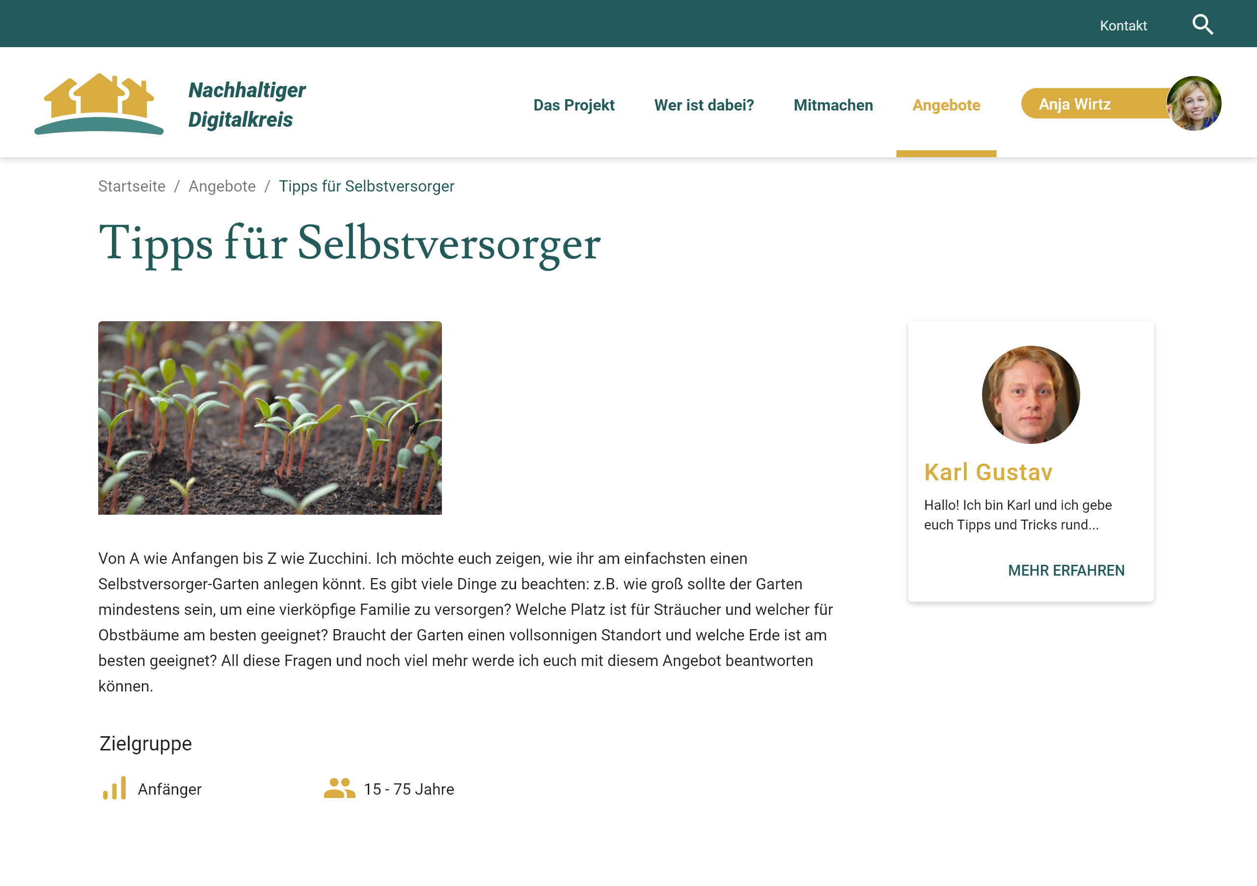 Abbildung 2: Darstellung der Seite »Das Projekt«